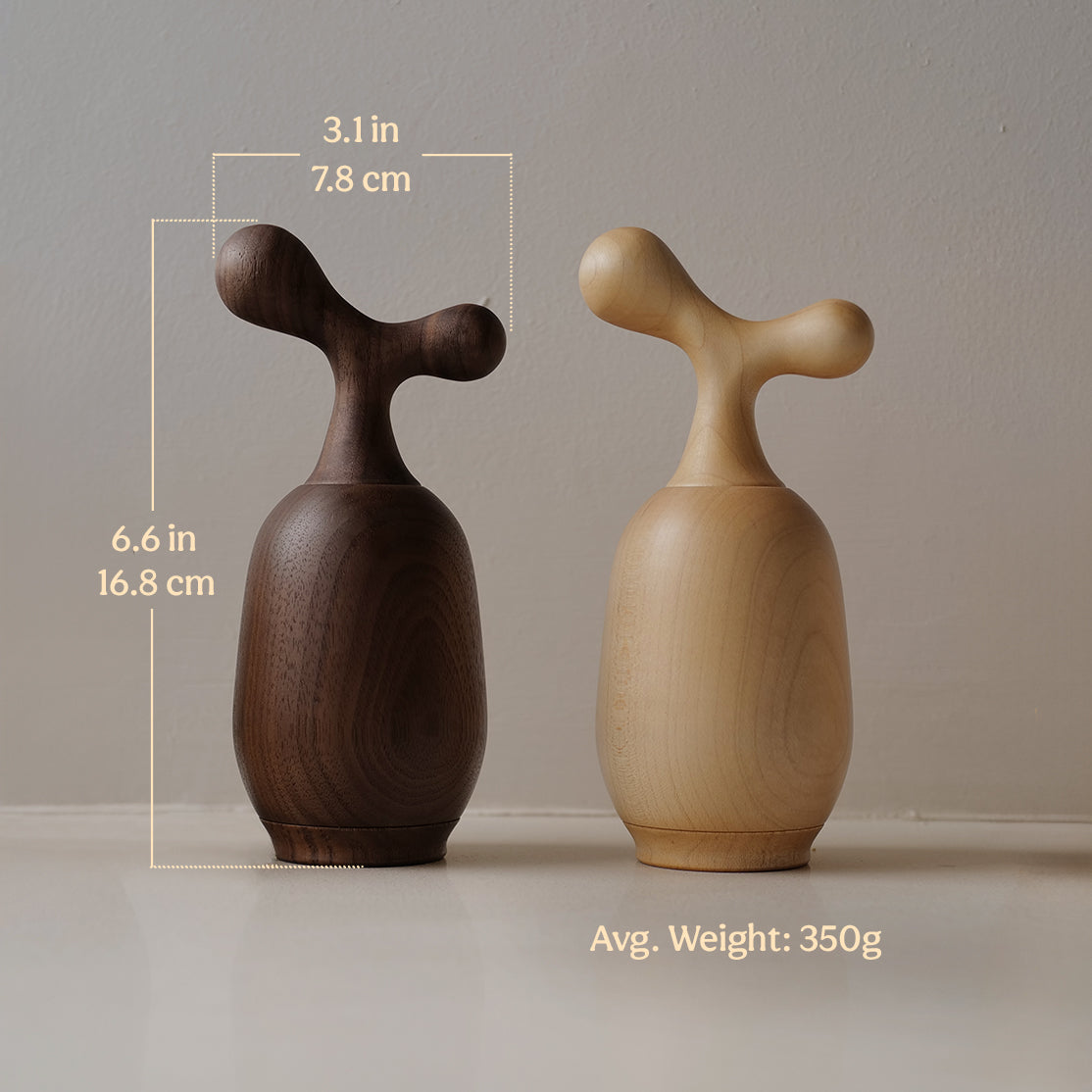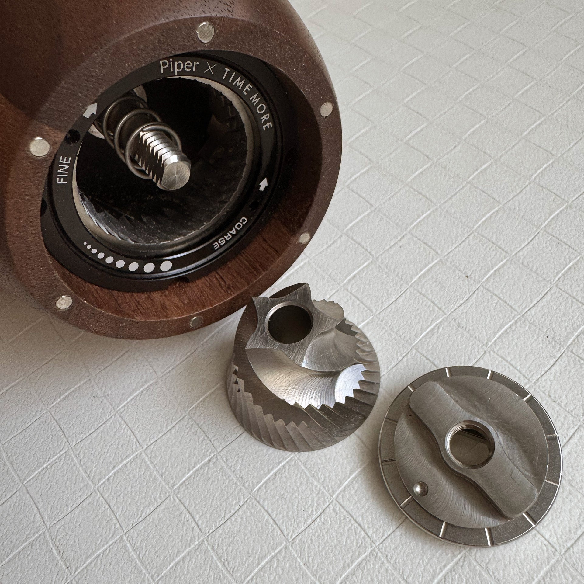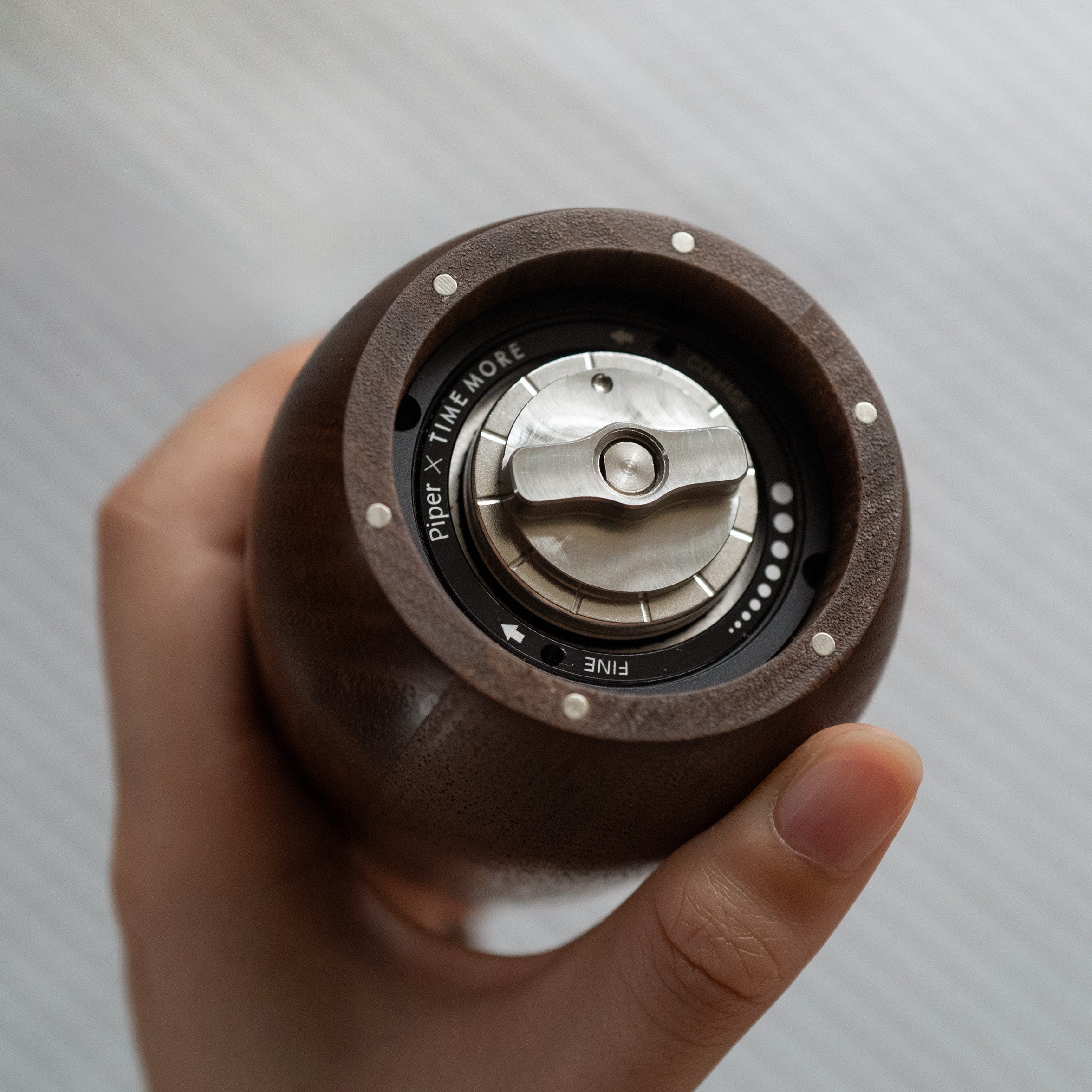 Each Piper grinder starts from blocks of sustainably sourced American walnut or maple — no veneers, no shortcuts. The grain, the texture, the way it warms in your hand — that’s real wood doing what it does best: aging beautifully with use.